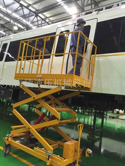 500KG剪叉式液壓升降平臺應(yīng)用于中車南寧軌道交通