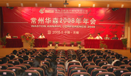 08年5月--華森公司2008年年會在無錫太湖之濱(無錫紫金會議中心)隆重召開,本次會議共有包括各省著名主任醫(yī)師、華森優(yōu)秀經(jīng)銷商以及部分新經(jīng)銷商在內(nèi)的各界嘉賓近200人與會。大家回顧過去,展望未來,積極探討新形勢下新的思路,決心合力把華森打造成一家值得信賴并受人尊敬的世界級醫(yī)療企業(yè)。