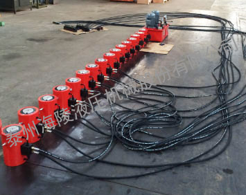 我公司設(shè)計制造的(PLC)同步千斤頂廣泛適用于大型建筑工程設(shè)備,構(gòu)件的同步起頂、調(diào)整及鐵路、公路、橋梁工程的架設(shè)。它可根據(jù)現(xiàn)場的實(shí)際情況選配不同規(guī)格、型號、數(shù)量的超薄型JRSM系列、薄型JRCS系列、大噸位DYG系列10T、20T、30T、50T、100T、150T、200T、320T、500T千斤頂。以及配備1.1KW、2.2KW、3KW、4KW、5.5KW、7.5KW、13KW等不同規(guī)格的泵站,同時配備不同長度的高壓油管和合適的分配閥,采用一泵拖多頂?shù)姆椒ㄒ詽M足適應(yīng)施工現(xiàn)場的作業(yè)要求。
