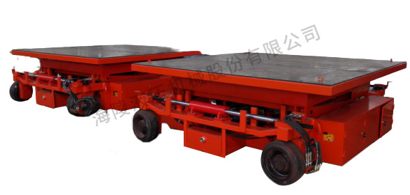 設(shè)備組成為液壓泵站驅(qū)動的升降平臺,升降平臺上工作臺面可實現(xiàn)前應(yīng)移動及旋轉(zhuǎn),整個平臺可實現(xiàn)縱橫向的行走,由電機驅(qū)動實現(xiàn)行走功能,可以自由運行,即能夠?qū)崿F(xiàn)縱向、橫向。