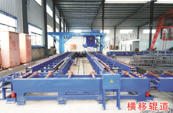 我公司生產(chǎn)的橫移輥道是一種物流輸送設備,它包括一個框架,框架的安裝板上安裝有橫移電機,框架的上端可移動配合設置輥道機主體,輥道機主體的兩端豎直向下延伸部與傳動鏈條兩端相連接,所述傳動鏈條經(jīng)由橫移電機兩側的傳動鏈輪導向后與橫移電機輸出軸上固定的主動鏈輪相嚙合。